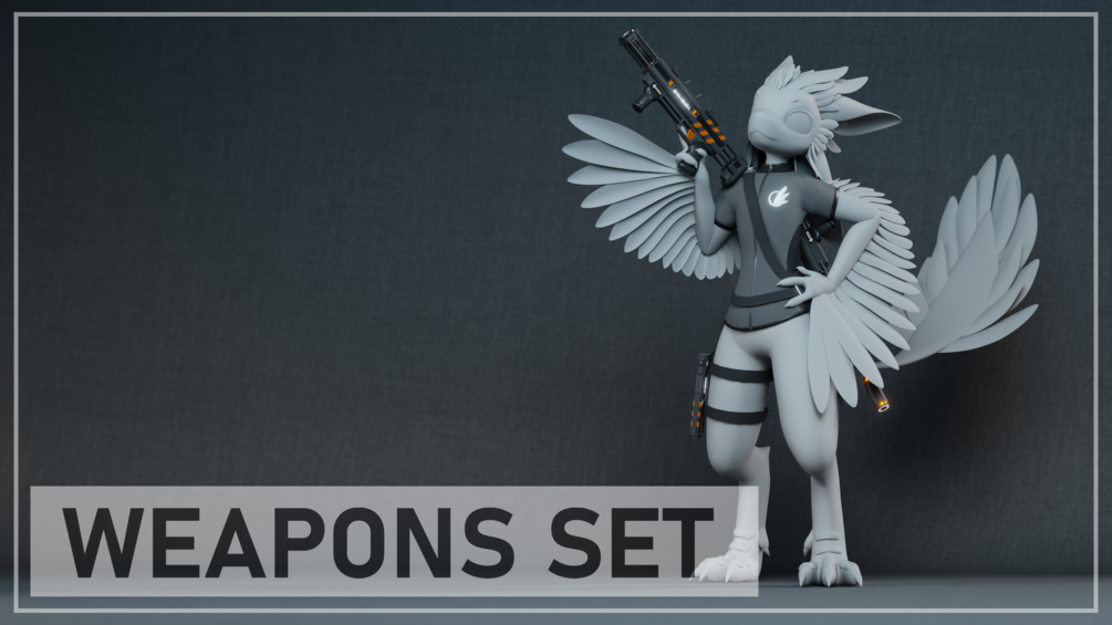 A nice set of Avali themed light energy weapons to strengthen your crew's defenses paired up with a modern, state of the art, magnetic sling to keep them holstered. Black and White variants available as default texture bases.